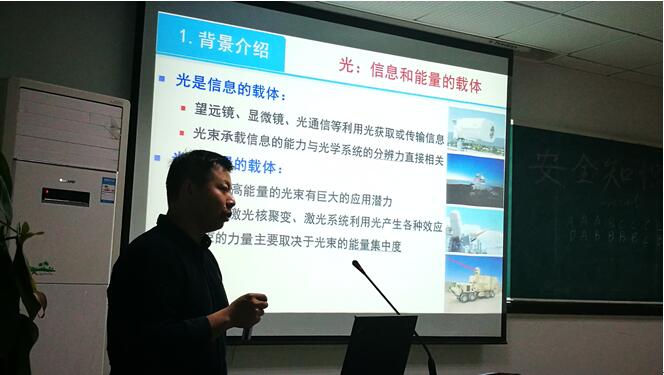 班会活动中,研究生部朱文介绍了中国科学院大学的基本情况,重点介绍了光电所概况、优势学科、科研成就以及研究生教育情况。鼓励大家积极投身国家光电科技事业。