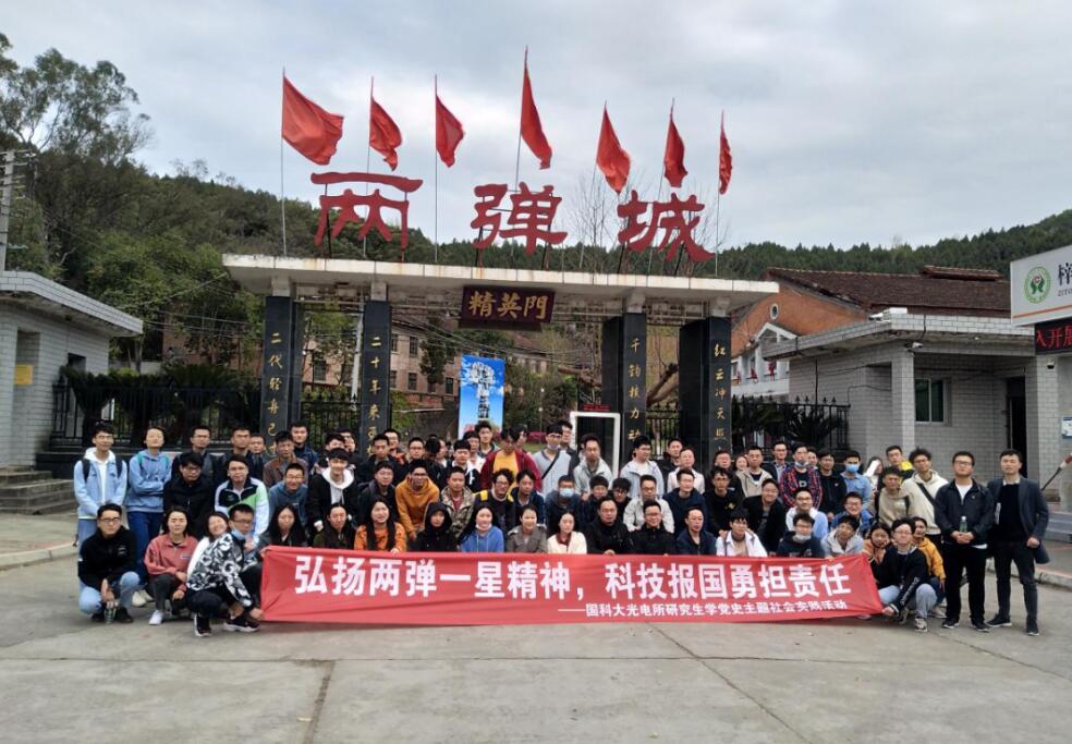 2021年3月19日,中国科学院光电技术研究所开展了以“弘扬两弹一星精神,科技报国勇担责任”为主题的学党史社会实践活动。光电所研究生一行共105人在研究生部老师的带领下于上午九点出发,在中国两弹城参观了大礼堂,学习中心(原图书馆),两弹历程馆(原模型厅),邓稼先旧居,三防教育馆(原防空洞)等院部旧址。学子们在讲解员的引导下,走进了20世纪的“两弹一星”年代,看到了干惊天动地事,做隐姓埋名人的老一辈科学家们,见证了共产党人在严峻形势下做出的巨大牺牲,取得的巨大奇迹,立志弘扬两弹一星精神,科技报国勇担责任。